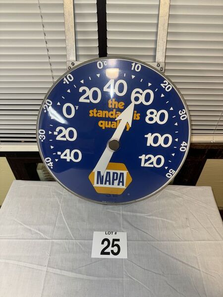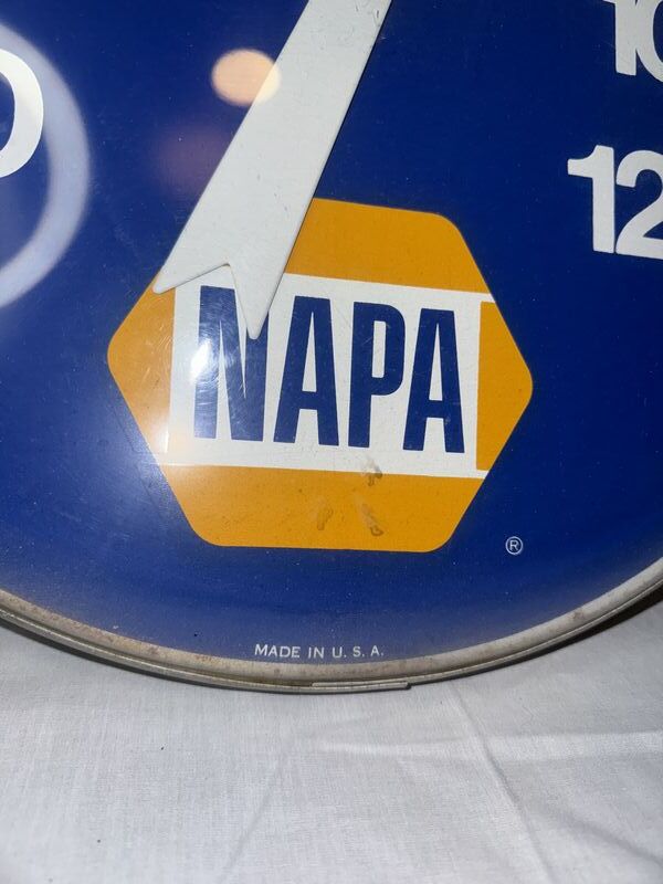 18 inches round plastic metal thermometer, NAPA some scratches Nixon dings overall in good condition sold as is