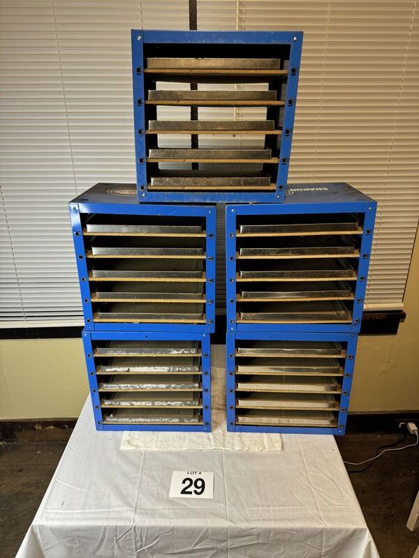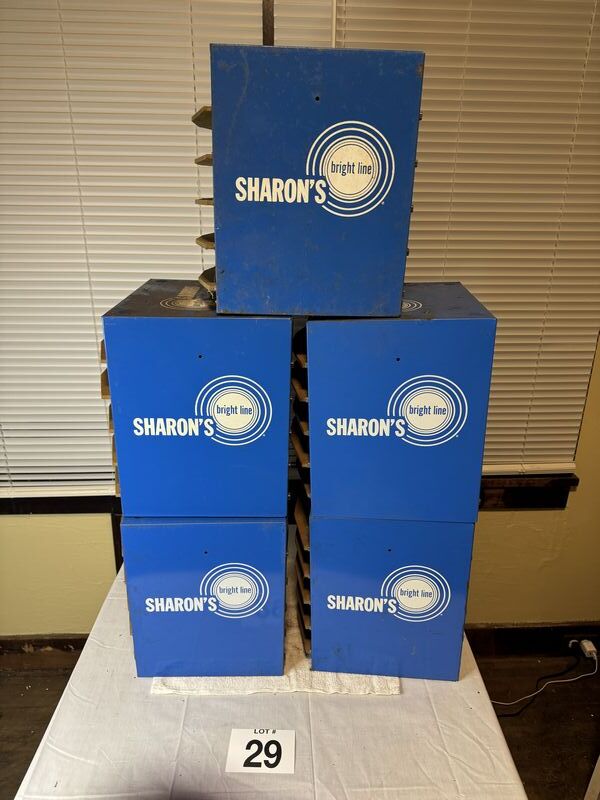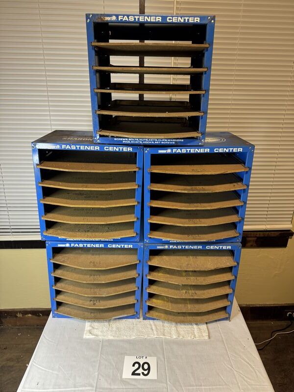 Sharon’s fastener center shelves lot of five some rust and tarnish needs a cleaning sold as is