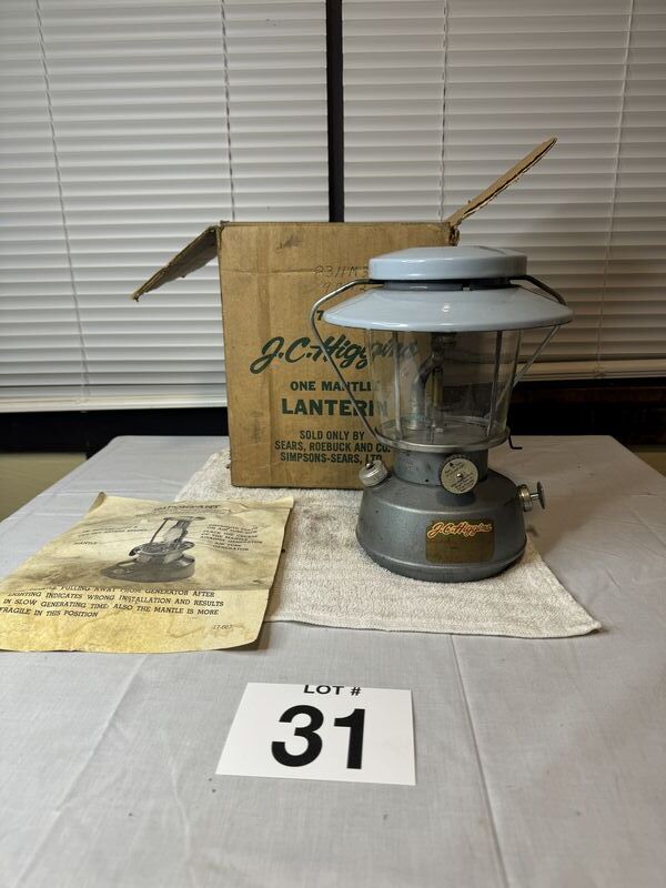 Antique J. C. Higgins lantern appears to be complete with box glass is not broken or cracked with instructions sold as is.
