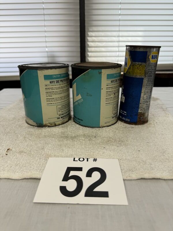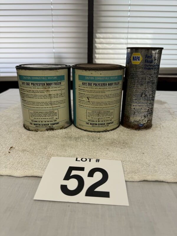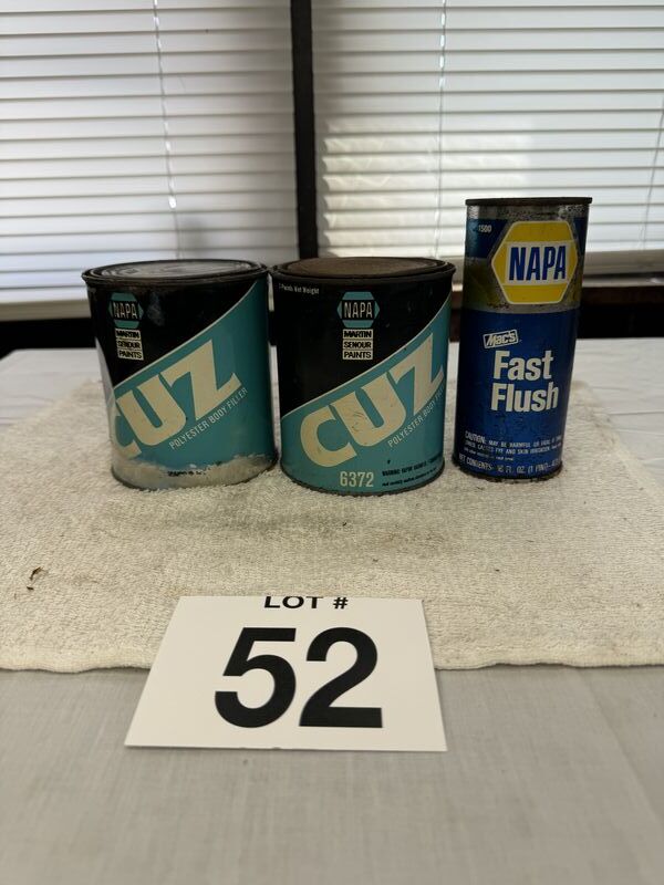 NAPA, fast flush and Napa Cuz polyester body filler. Some of the label has faded away on one can all cans have rust and tarnish sold as is.