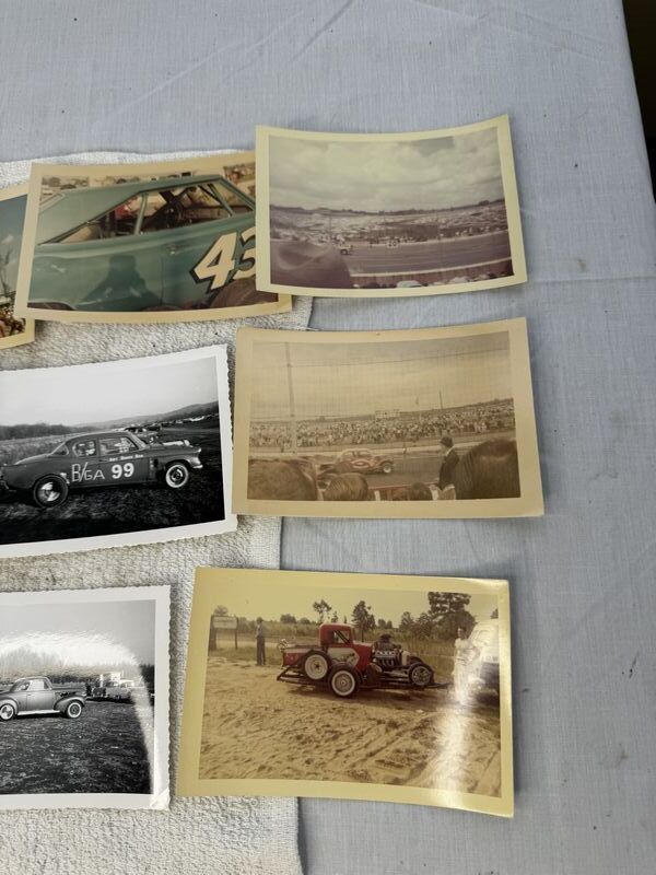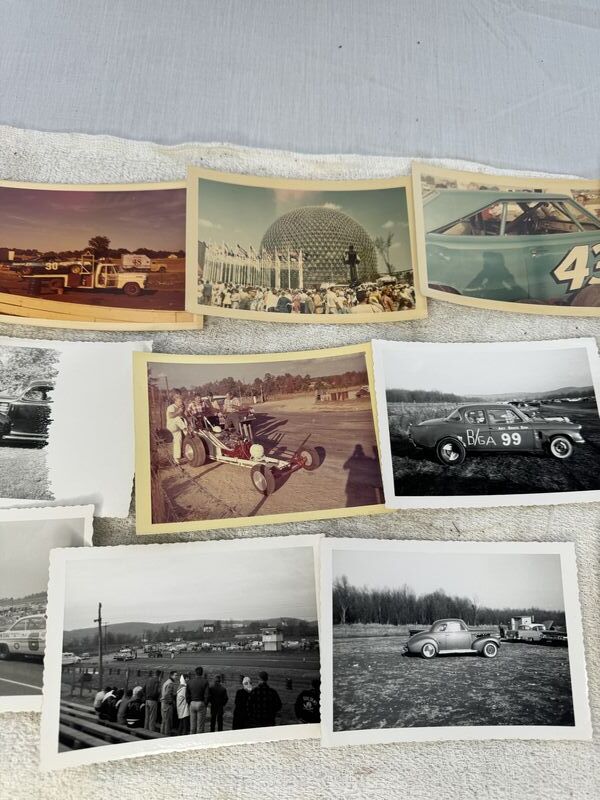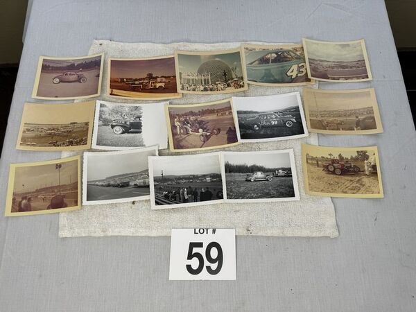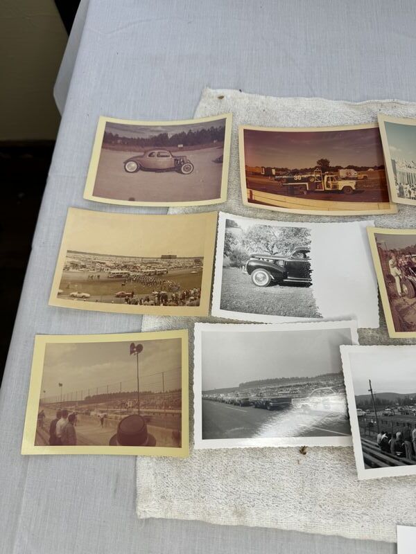 Vintage race, car, photos, and race track photos 12 and total no rips or tears sold as is