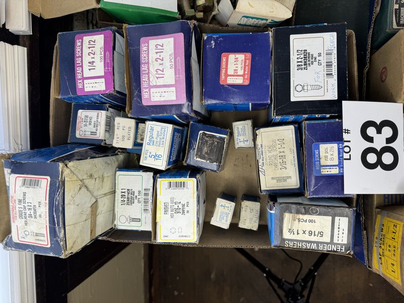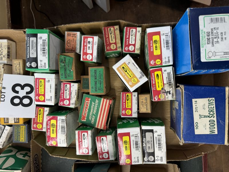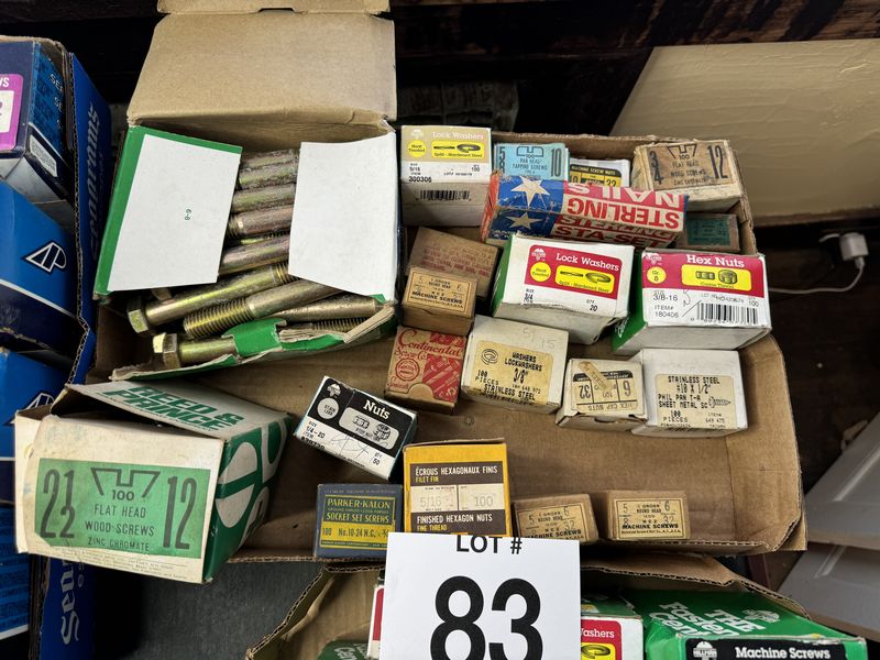 Nuts, bolts washers hardware lot most unused, some have bolt washers, taken out of sold as is