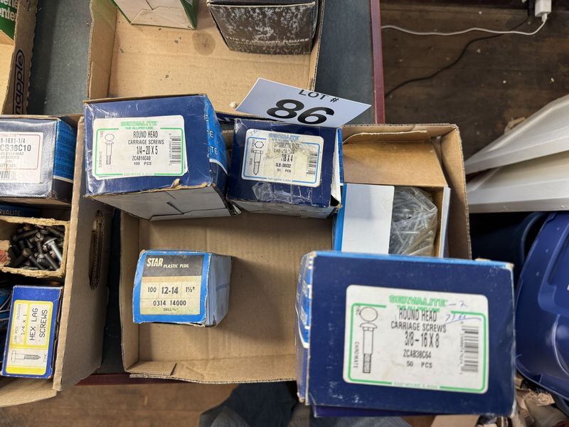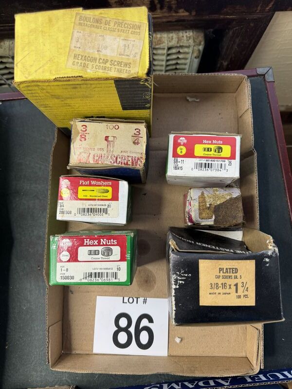 Nuts, bolts washers hardware lot most unused, some have some bolts washers or hardware taken out of sold as is