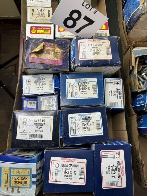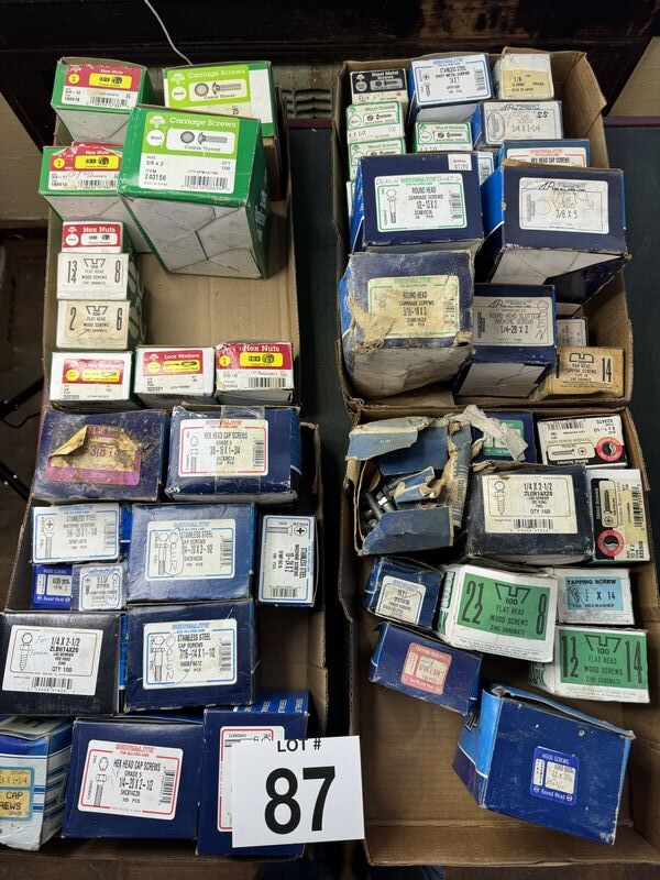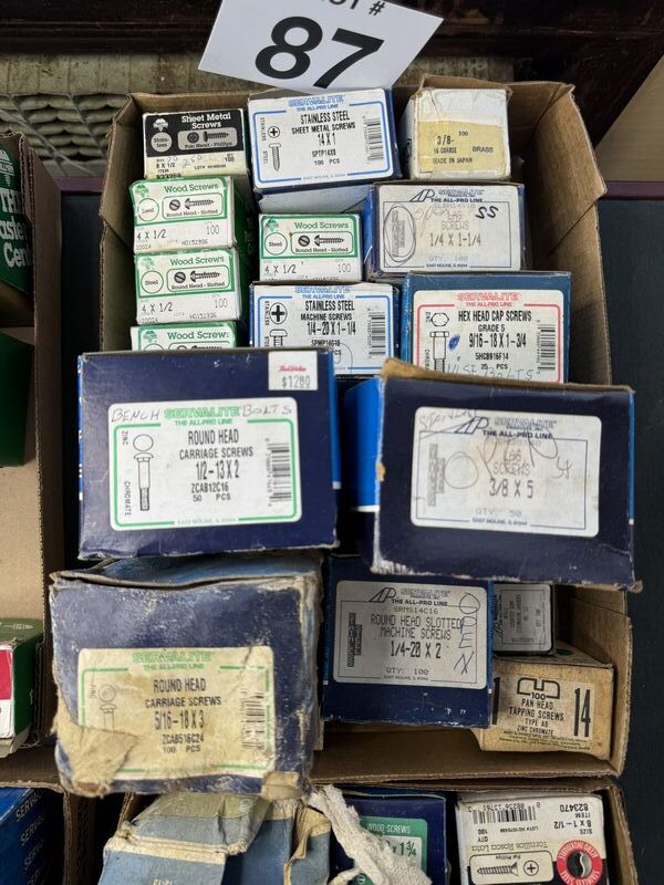 Nuts, bolts washers hardware lot, most unused, some have bolts hardware taken out of them sold as is