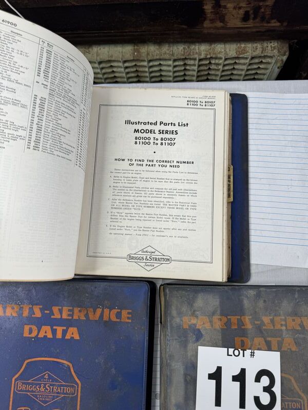 Briggs & Stratton parts manuals lots show signs of use sold as is