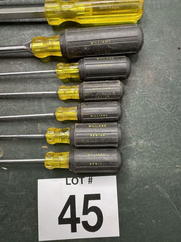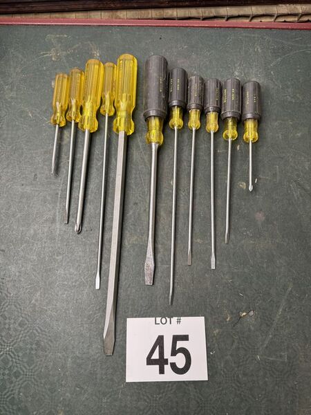 11 screwdrivers, 2 Phillips head, 9 flatheads. In good usable condition. Sold as is.