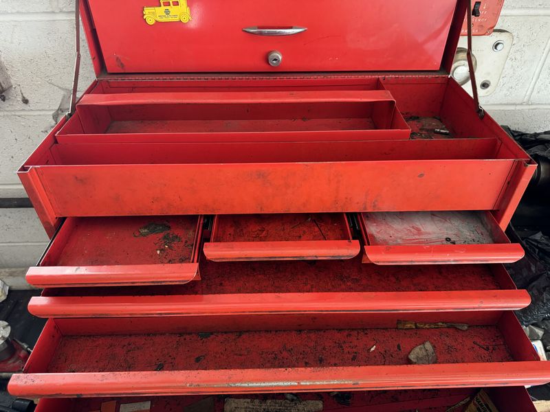 Vintage Snap on tool box 17 drawers. No keys. Empty in used condition. Sold as is.