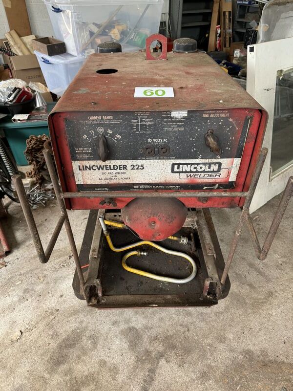 Lincwelder 225 with cart. Unknown operating condition. Sold as is