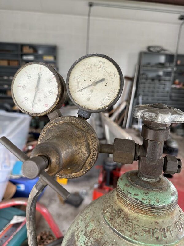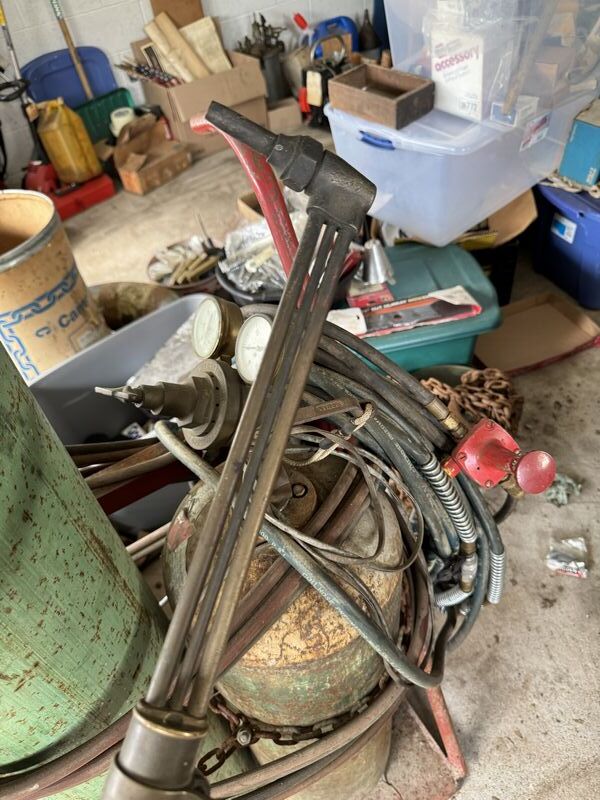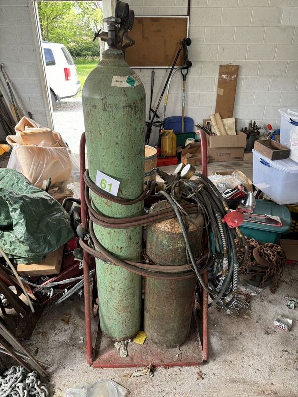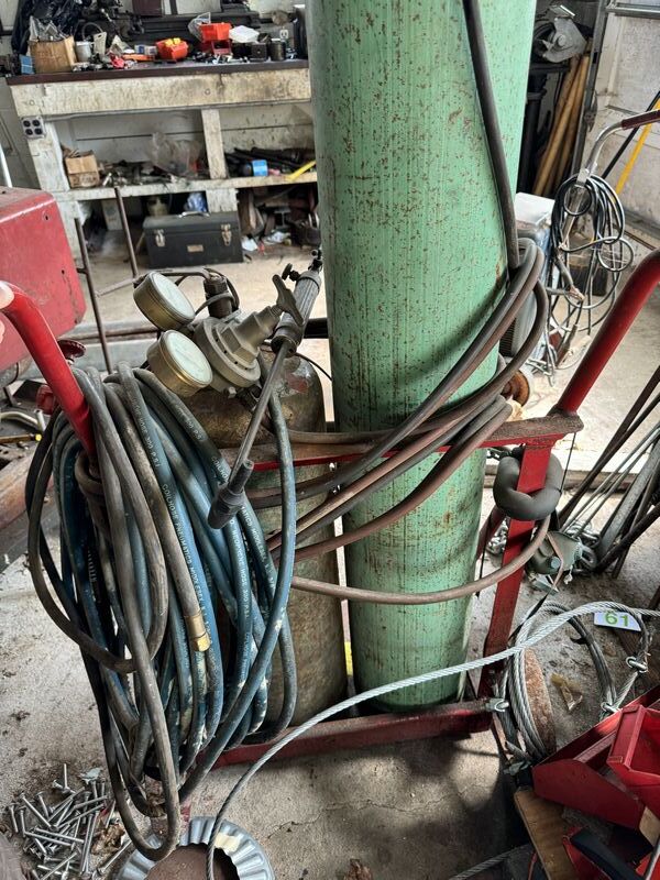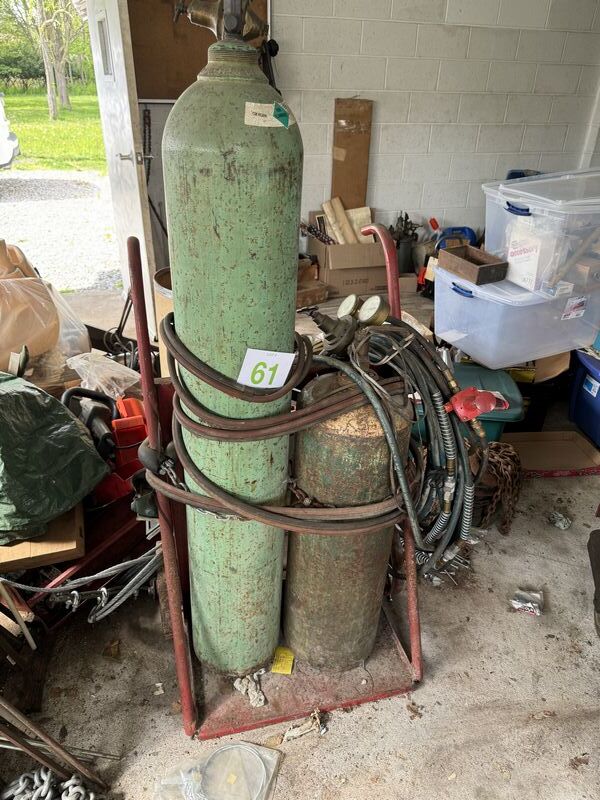 Cutting torches, hoses, welding cart and oxygen and acetylene tanks. Both tanks have liquid unsure the amount of. Sold as is in working condition.