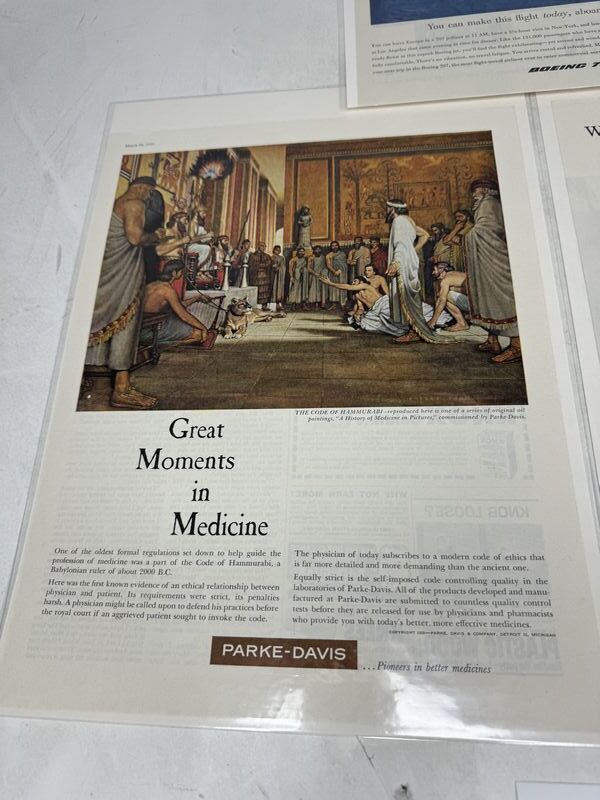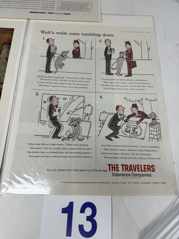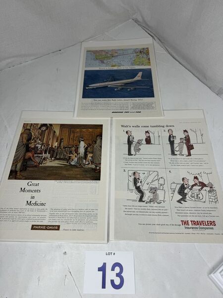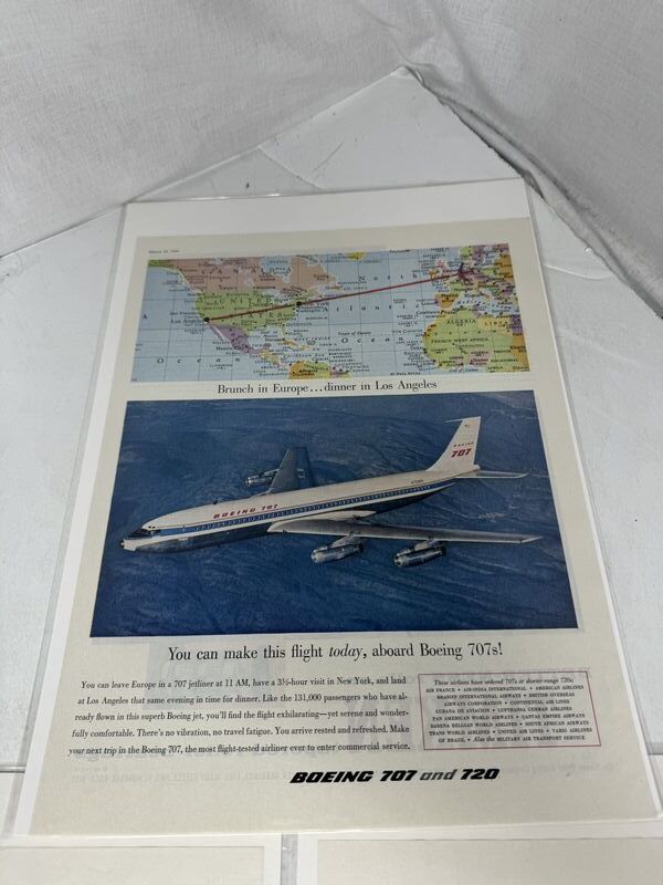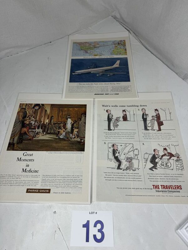 Magazine cut out three in total all in plastic sleeves with cardboard backing. Do you have travelers insurance companies, parke-davis medicines, and Boeing 707 sold as is