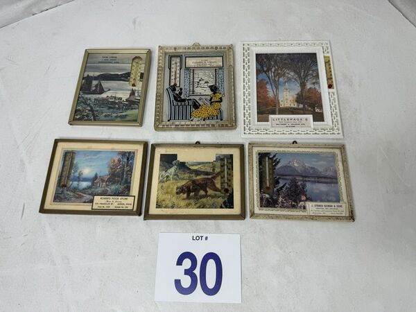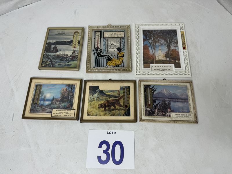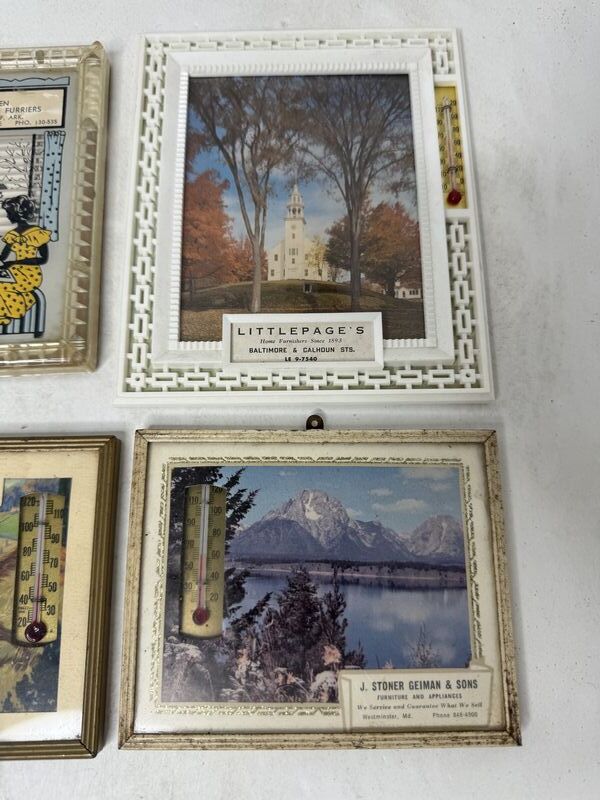 All thermometers are approximately 3 x 5” some have calendars on the back of them. See photos for description sold as is.