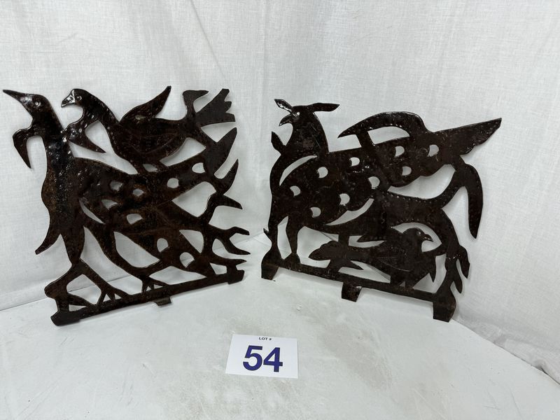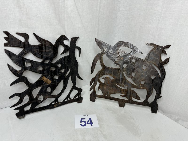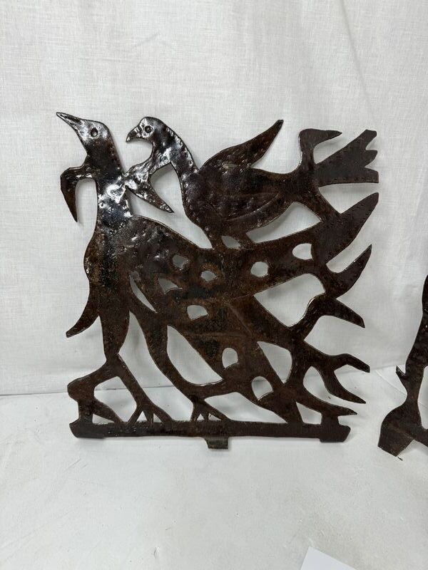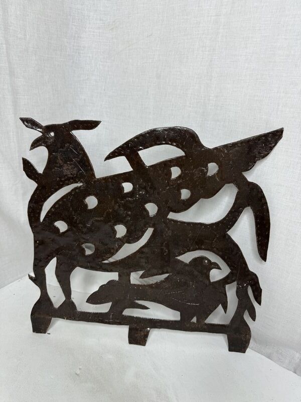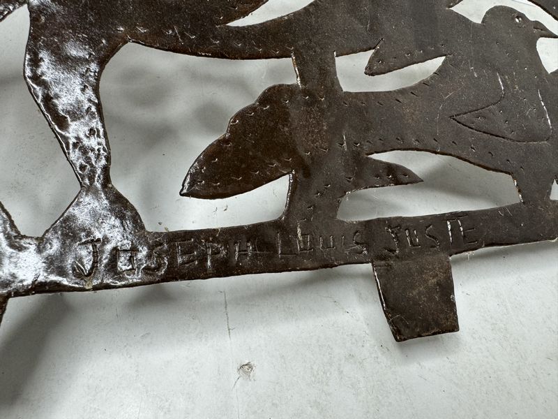 Signed Joesph Louis Juste metal cut work art approximately 12” x 12” see photos for description sold as as
