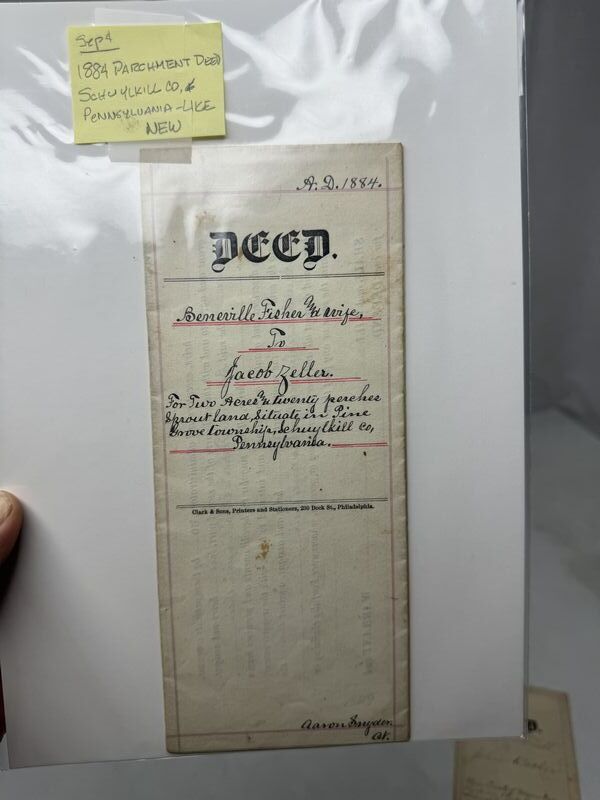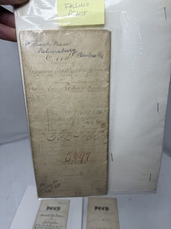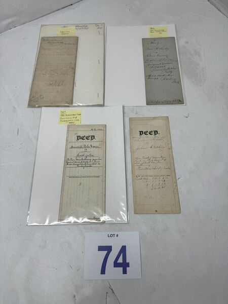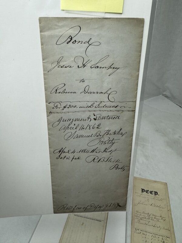 Antique deed lot from 1860s to 1915 one deed is falling apart. The other deeds are intact. One is a handwritten bond photos for description sold as.