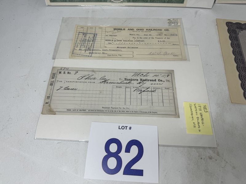 Canceled railroad stocks and 2 Railway Way bills see photos for description sold as is