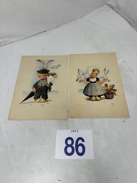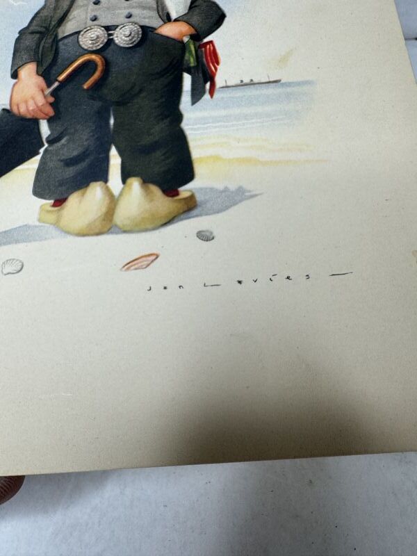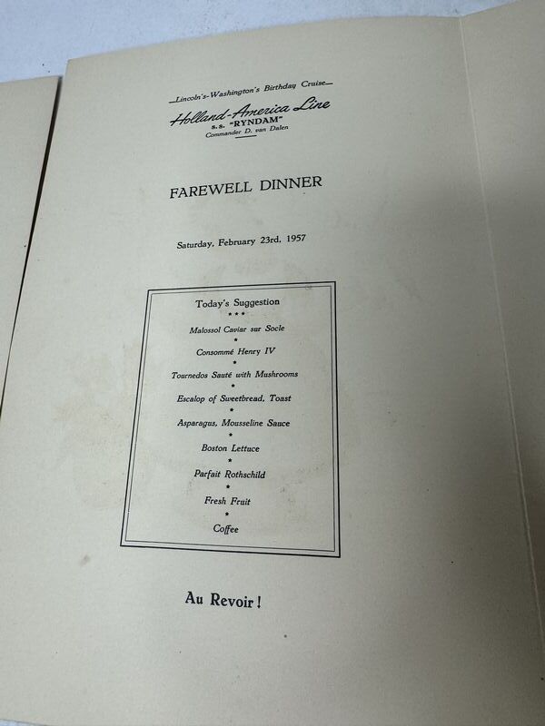 Holland American line menus February 23, 1957 art signed by Jenn Avies. See photos for description sold as is.