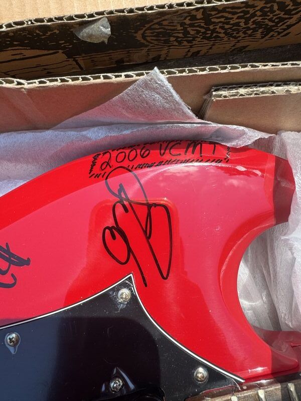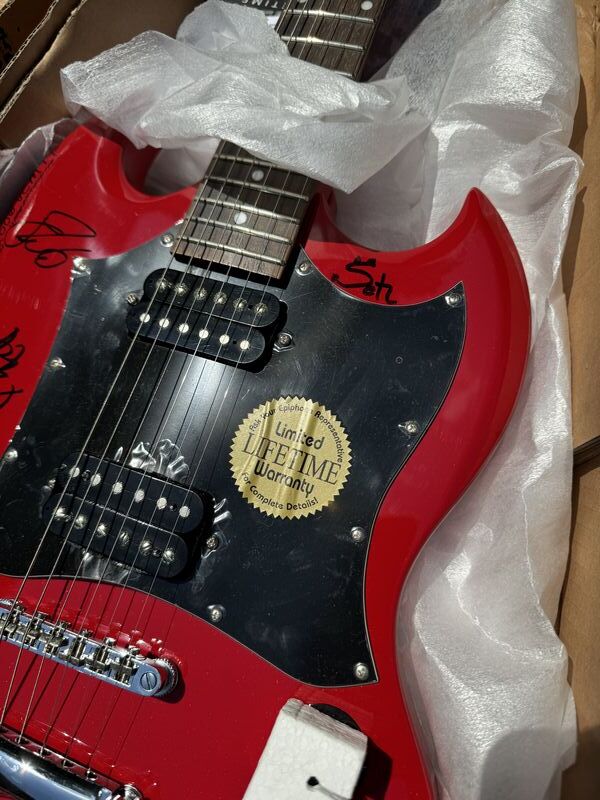 Epiphone G-310 from virgin records tour 2006 New unused. The guitar has multiple signatures. See photos for description sold as is