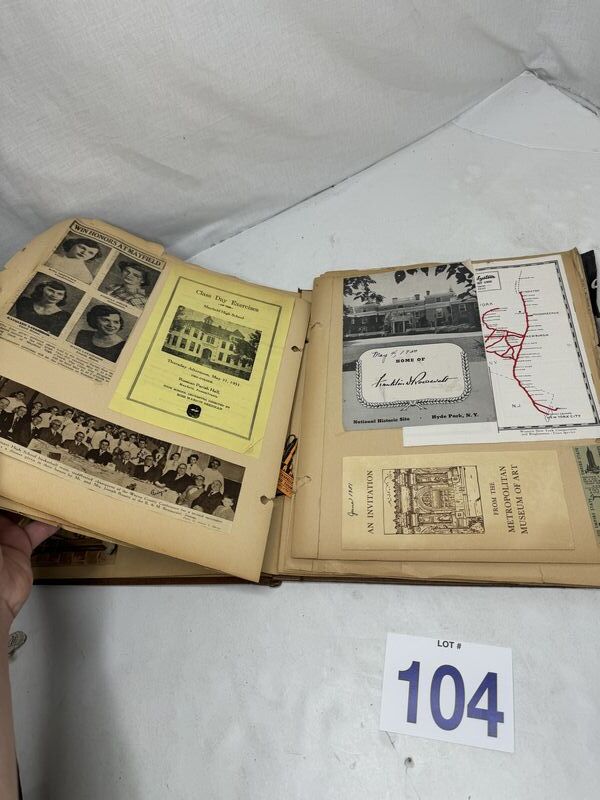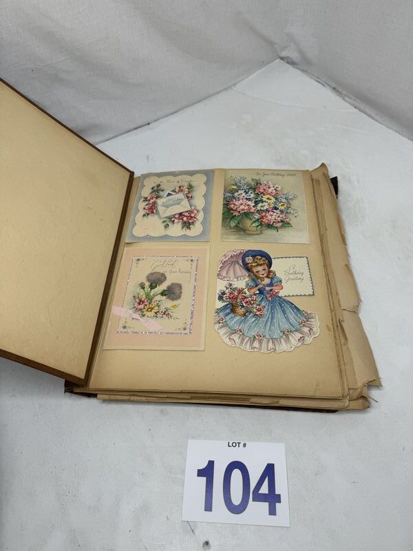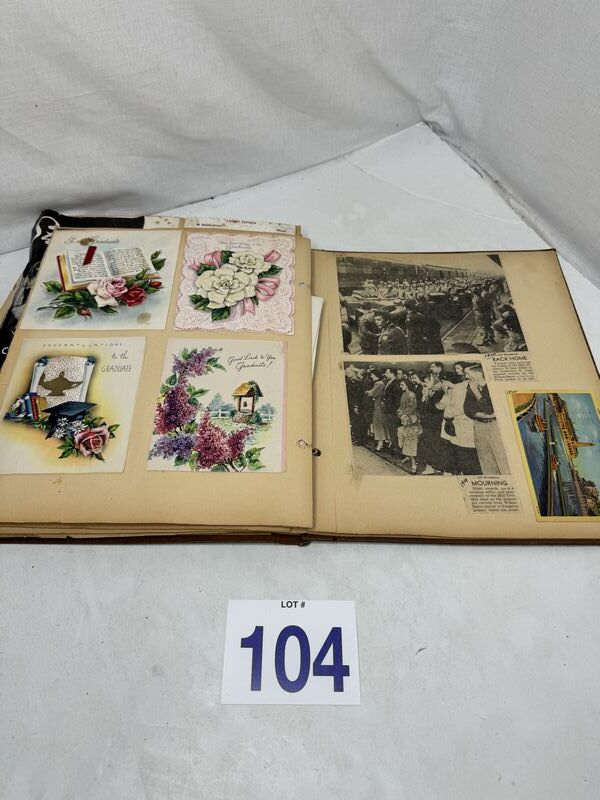 The scrapbook is full of cards, newspaper articles, brochures, and more. The scrapbook has some loose pages The scrapbook is about 3/4 full seat photos for description sold as is.