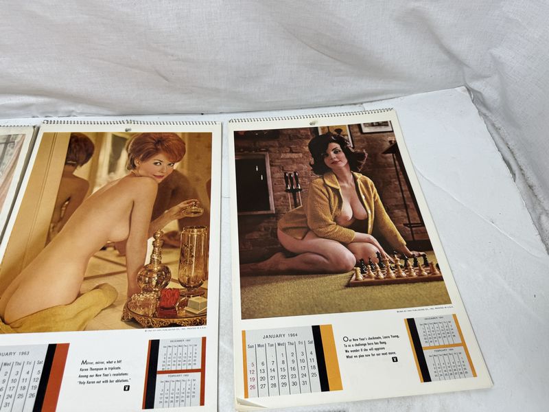 Playboy calendar lot 1960 1963, 1964, 1967 and 1965. All calendars are complete no rips or tears some bent corners sold as is.