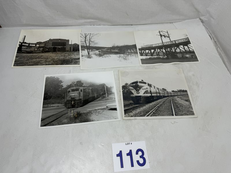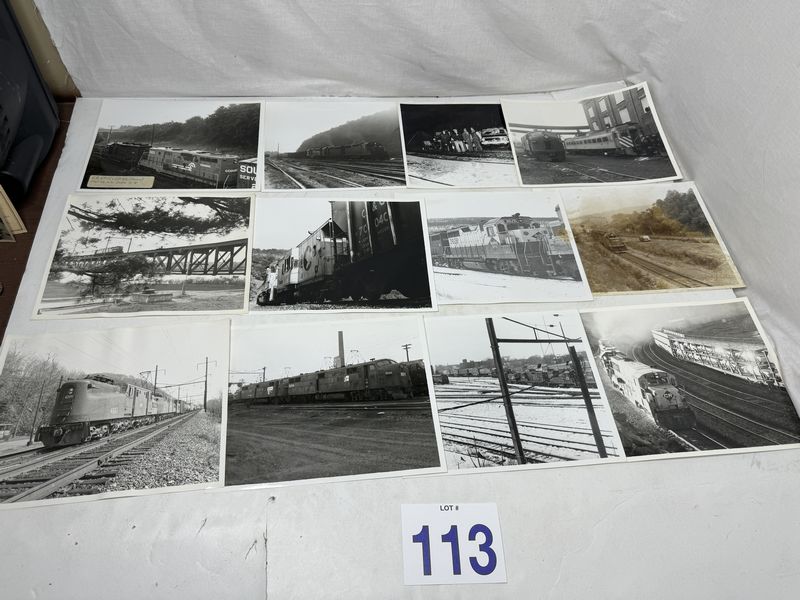 40 train railroad photos 8 1/2 x 11” some photos. Have some damage creases. See pictures for description sold as.