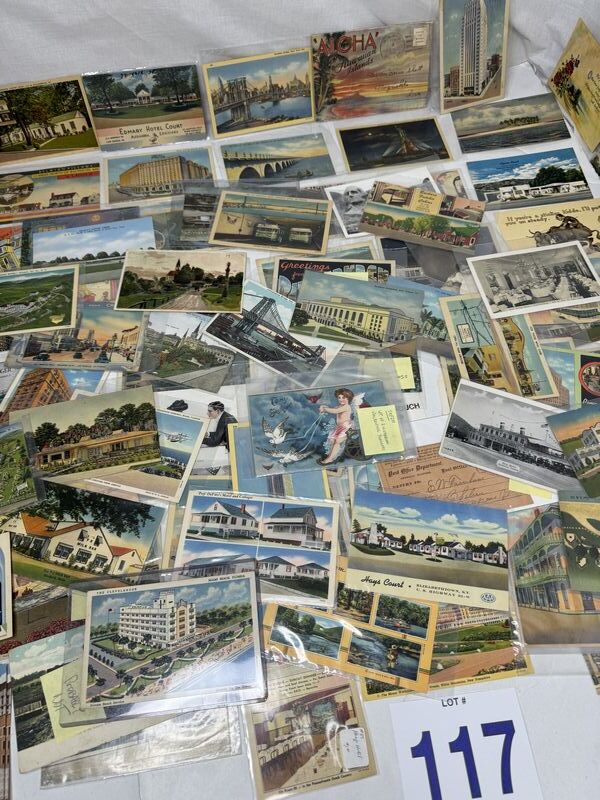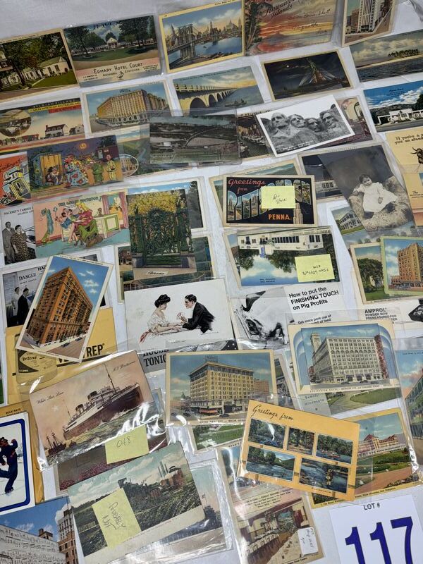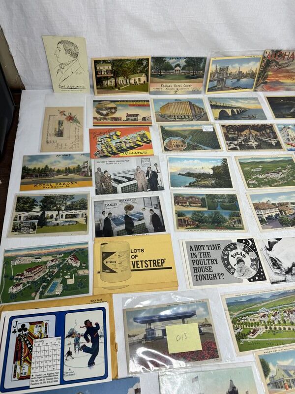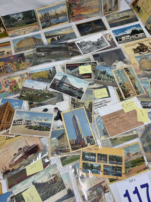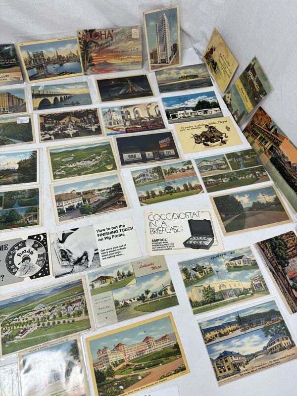 Huge postcard lot of 140 different various subject matters. Most of them are in plastic sleeves. See photos for description sold as is.