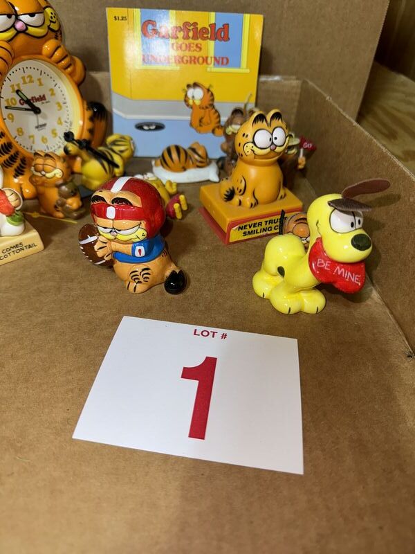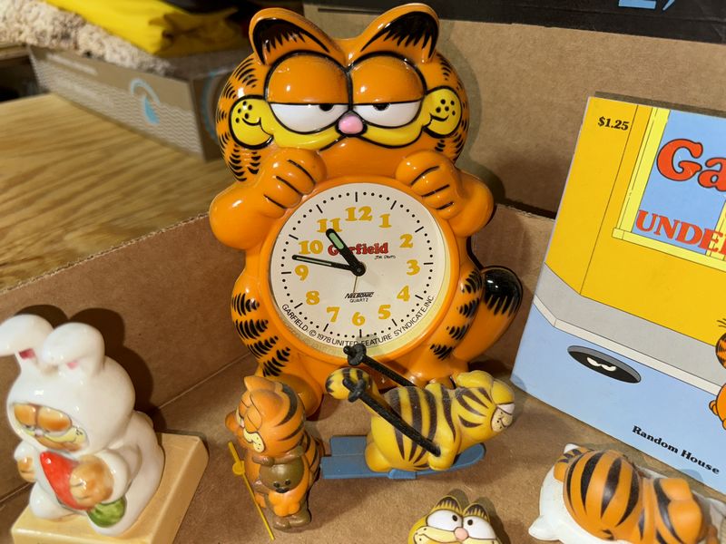 Various Garfield figurines and alarm clock 1978 see photos for description sold as is