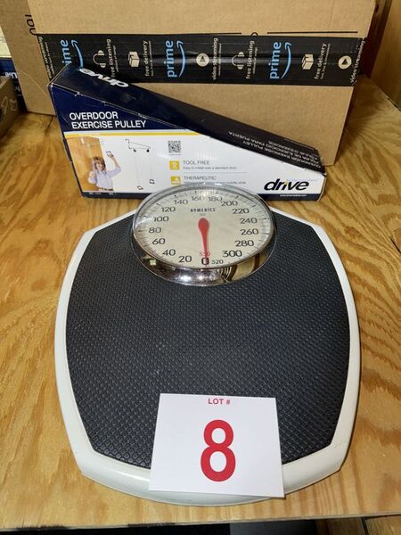Scale and exercise pulley lot both items and working condition sold as is