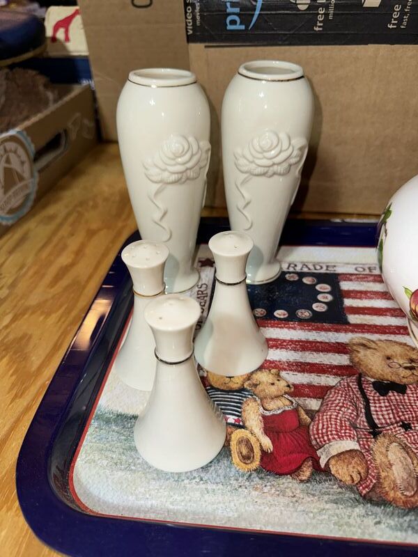 Lennox salt and pepper shakers Lennox vases, a serving bowl and a serving dish no chips or cracks. See photos.