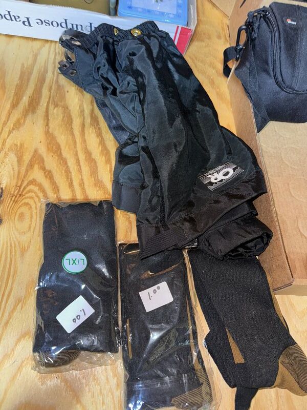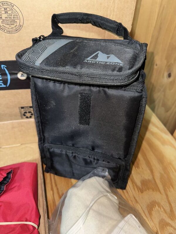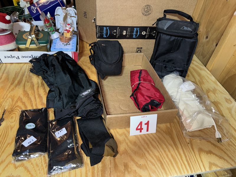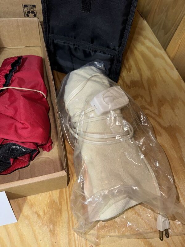 Leg warmers, compression socks, camera case, lunchbox cooler, and heating pad