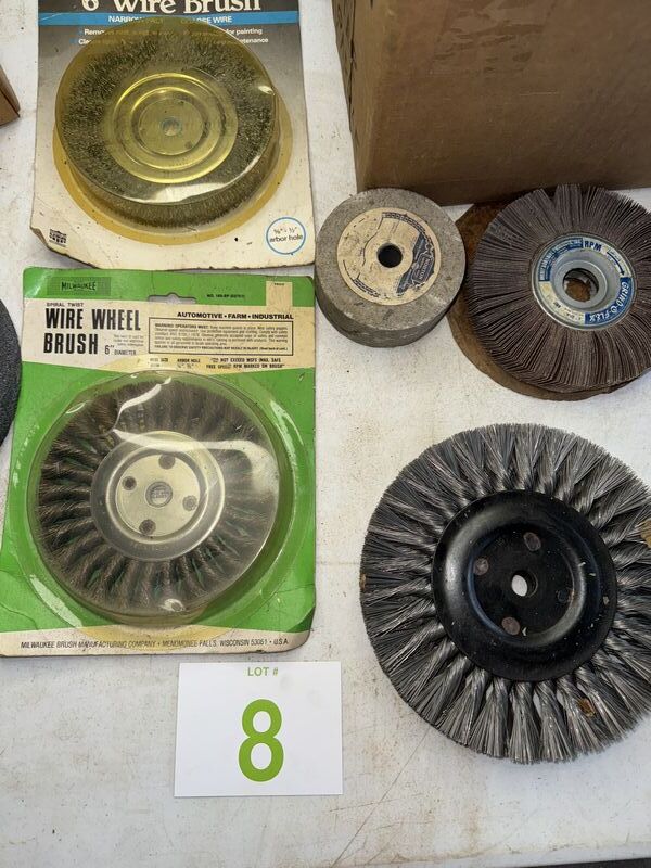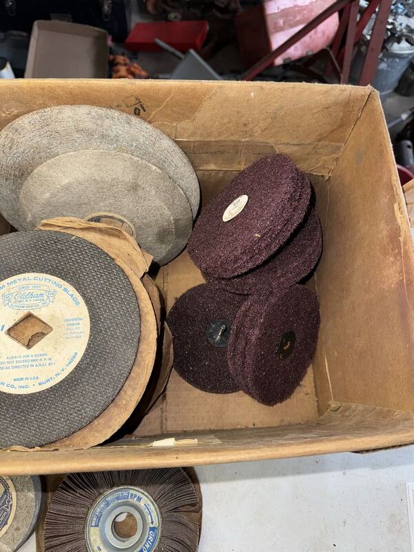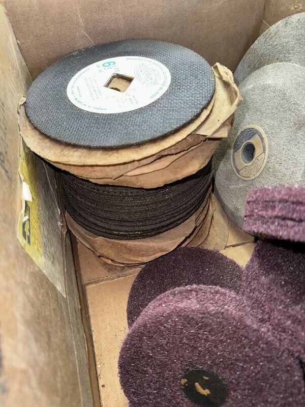 Wire brushes, grinding wheels, and metal cutting blades large quantity see photos for description our new old stock