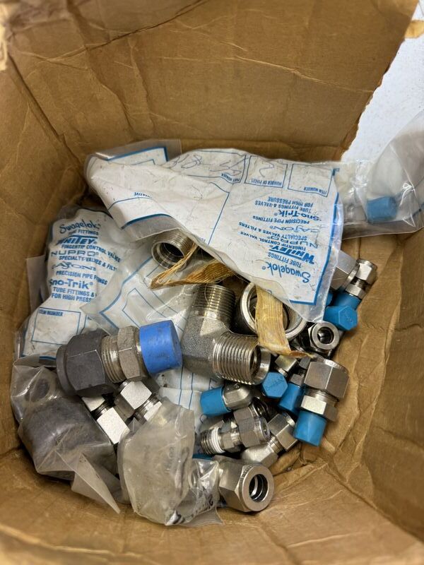 Various specialty valves and fittings different sizes approximately 20 pounds worth most are new old stock. Some are used. See photos for description.