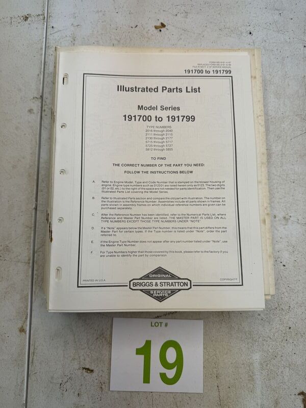 Large quantity of Briggs & Stratton service manuals and pricelist 1980s see photos for description