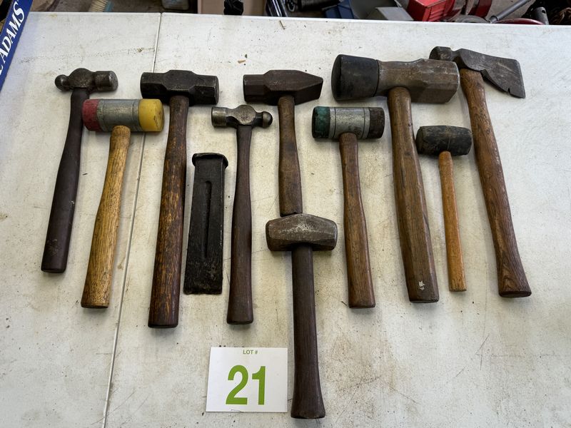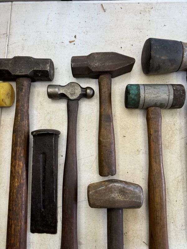 11. Different types of hammers and mallets ball pin sledgehammers various sizes see photos.
