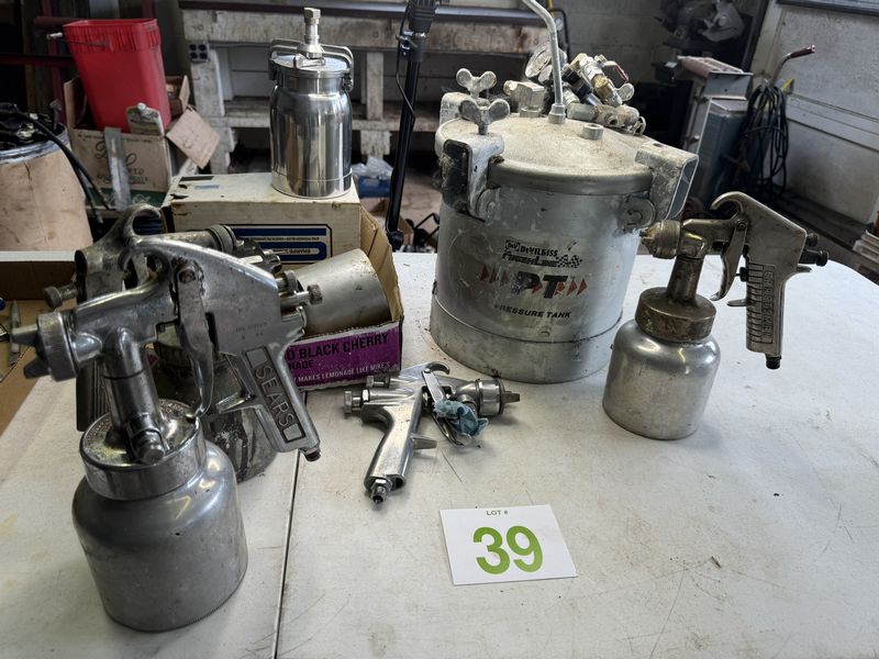 Multiple spray guns and spray pots one pressure tank all used and untested soul bases
