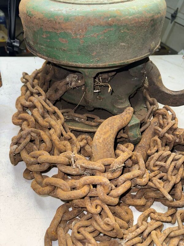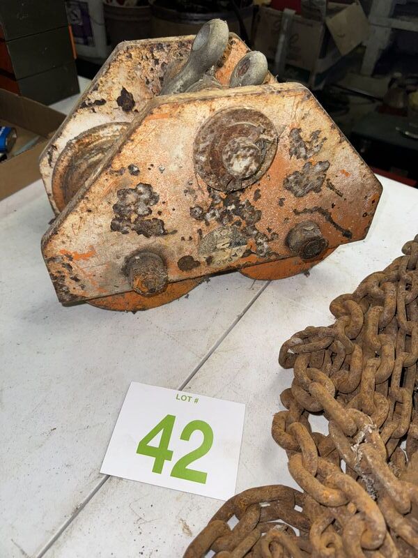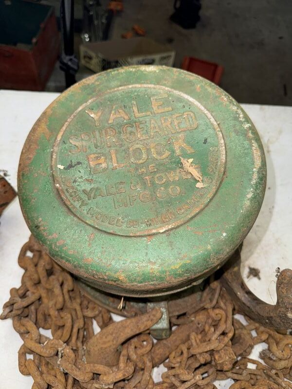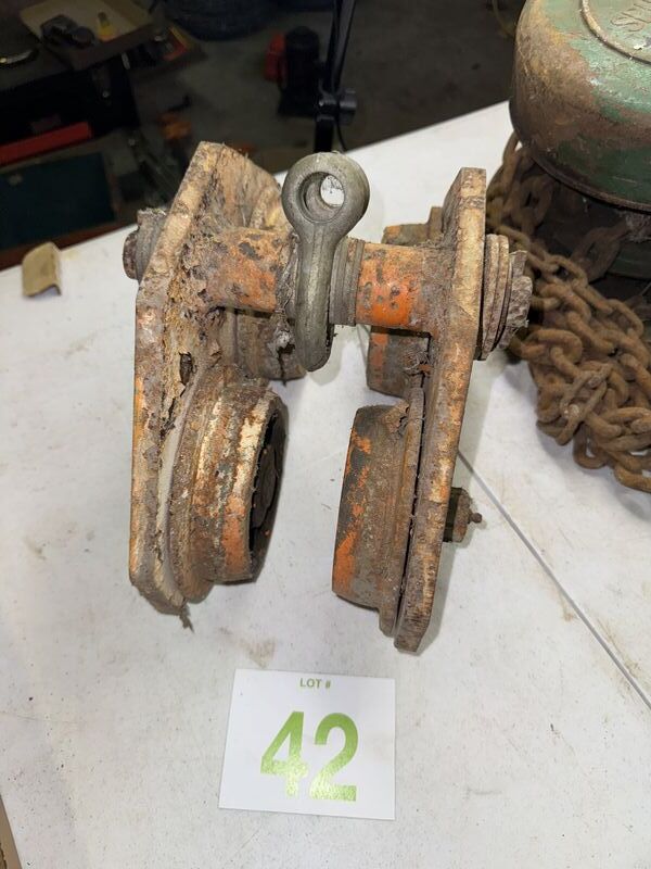 Yale spur geared block 1 ton with I-beam trolley both items have rust and tarnish untested sold as is
