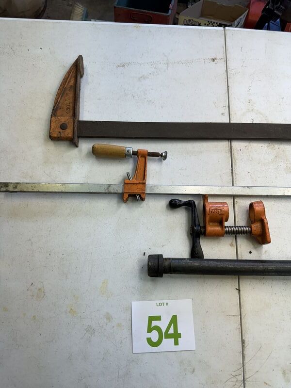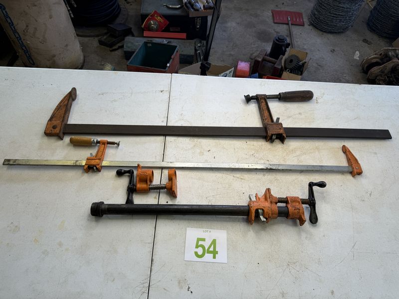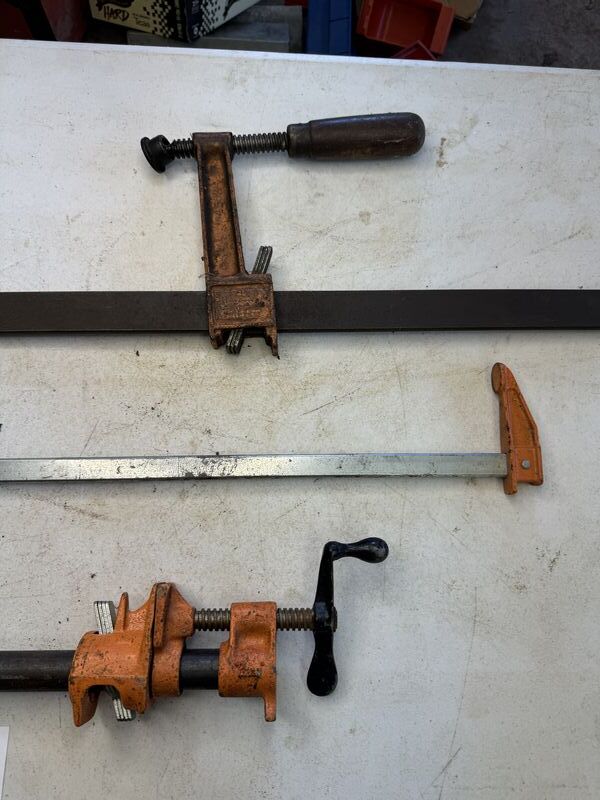 Jorgensen bar clamps and pony brand Approximately 40 inch span on two of them 20 inch span on the smaller one. see photos for description