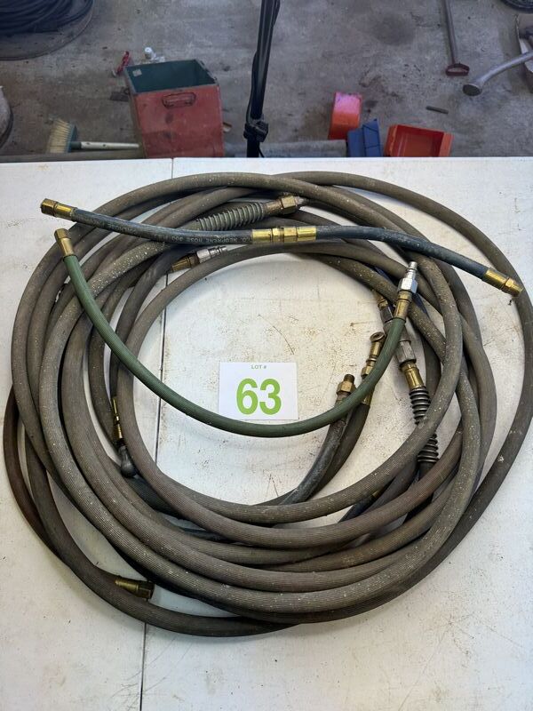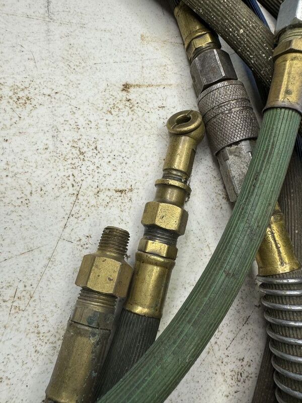 Heavy duty air hose and used condition with accessories some small pieces. See photos for description sold as is.