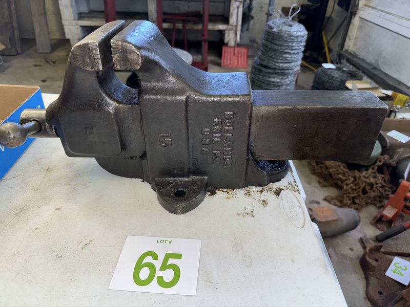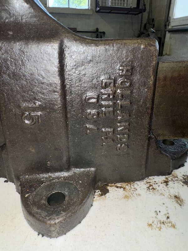 Holland number 15 bench vice 5 inch jaws opens approximately 20 inches. See photos for description sold as is.