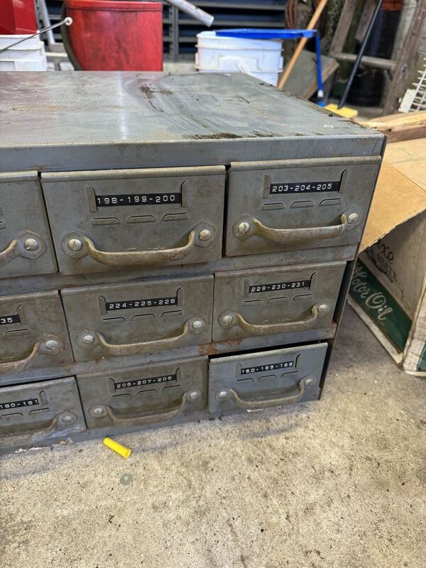Hardware file cabinet Equipto brand and used condition. Measurements are 34” x 14” x 17” deep no contents sold as is.