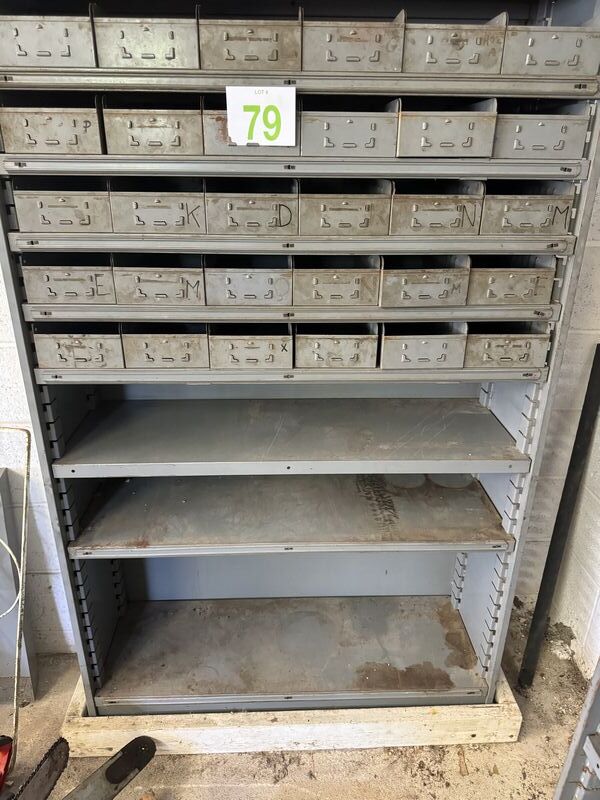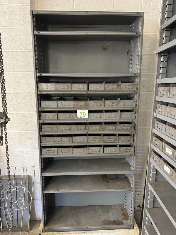 Metal shelf unit and use condition dimensions are 7’ x 3’ x 1’ deep buyers responsible for removal. See photos for description sold as is.