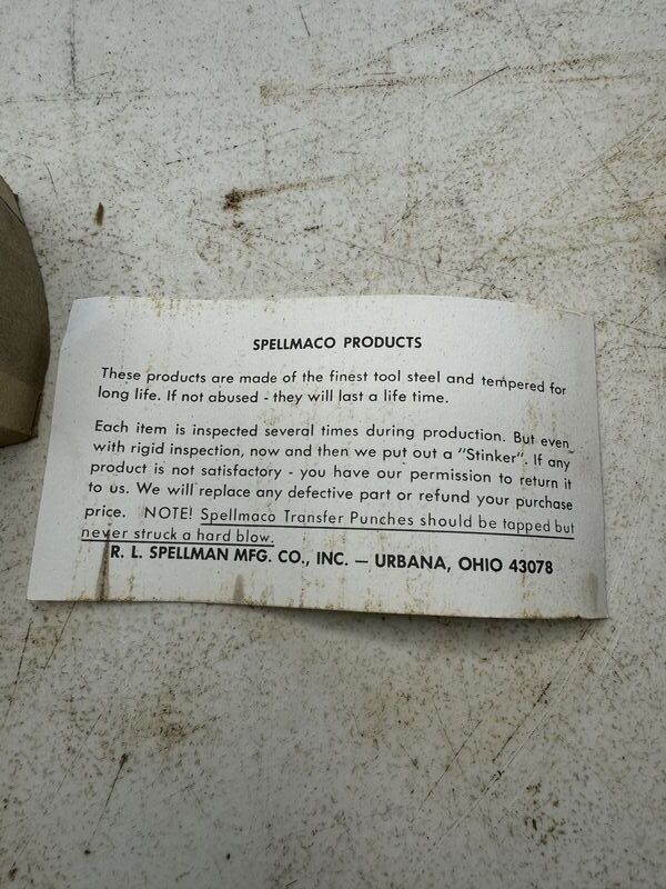 New old stock Spellmaco transfer punch set number 3–17. See photos for description sold as is.