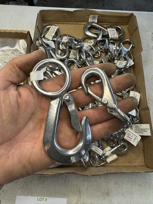 Quick snap hook lot, various sizes and quick snap hooks replacement parts. All new old stock. See photos for description sold as is.