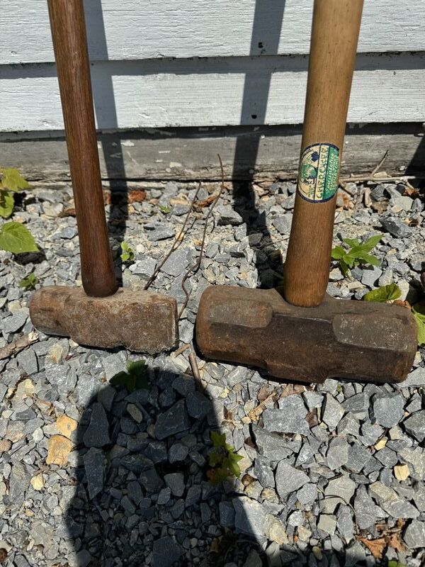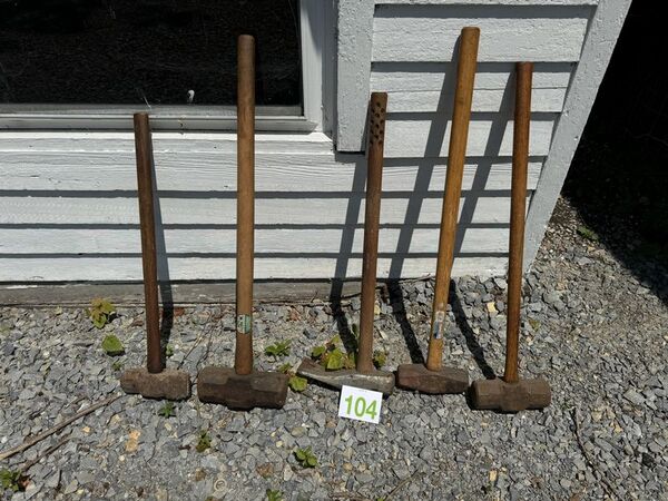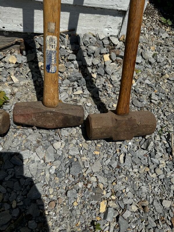 Five sledgehammers 120 pound sledgehammer to 10 pound sledge hammers to splitting axes see photos for description