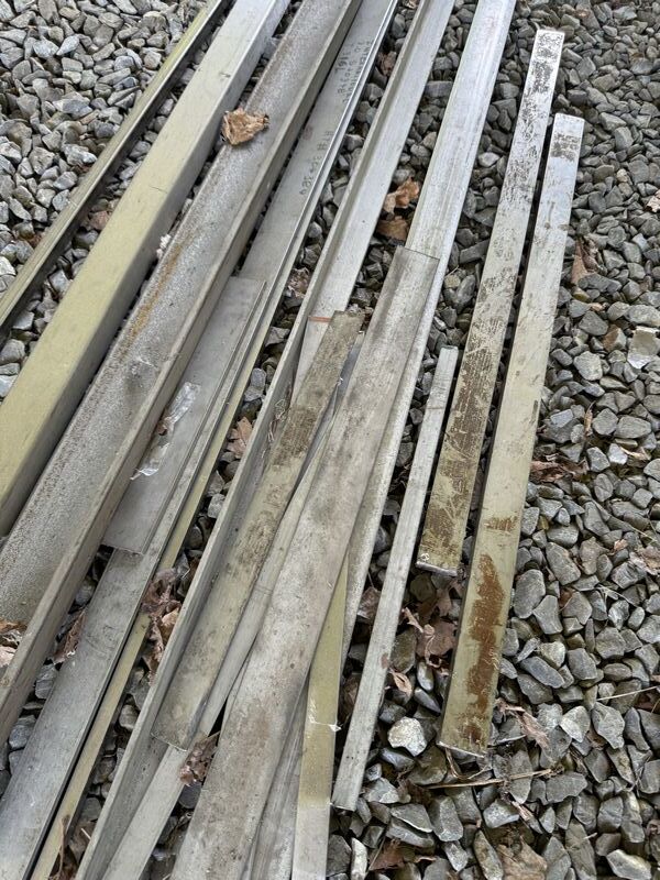 Thick gauge metal scraps various pieces longest piece is 16 feet. See photos for description sold as as.