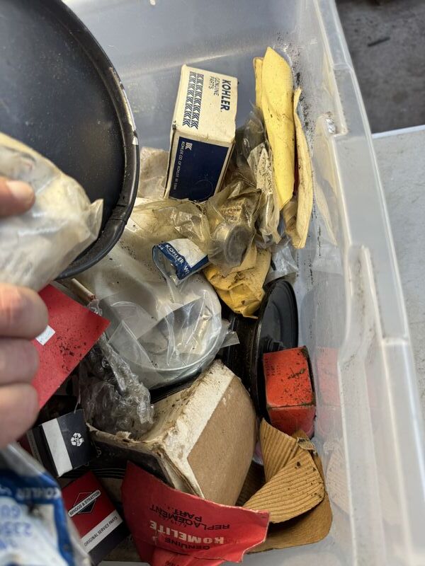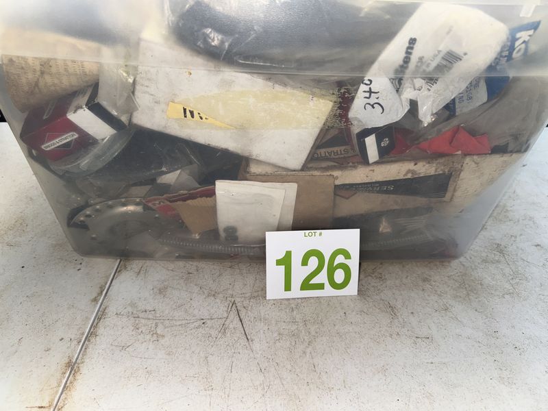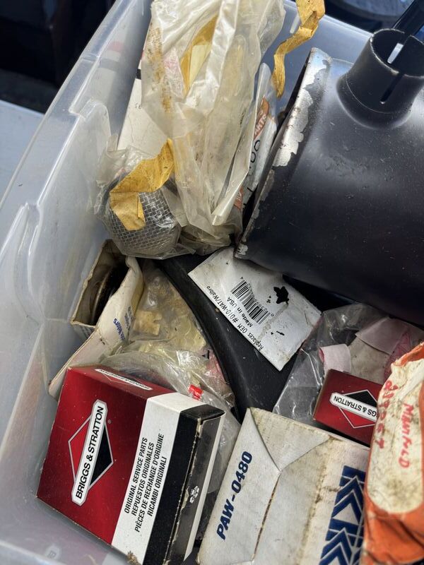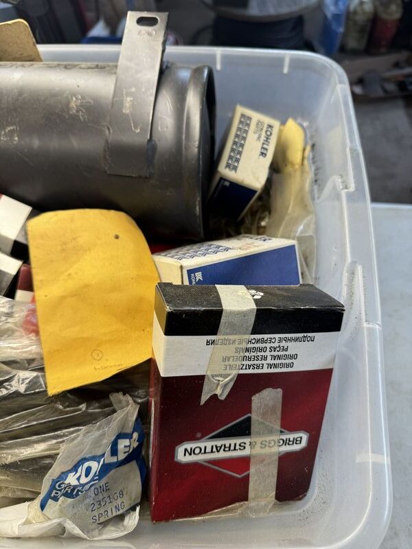Tote of new old stock small engine parts see photos for description