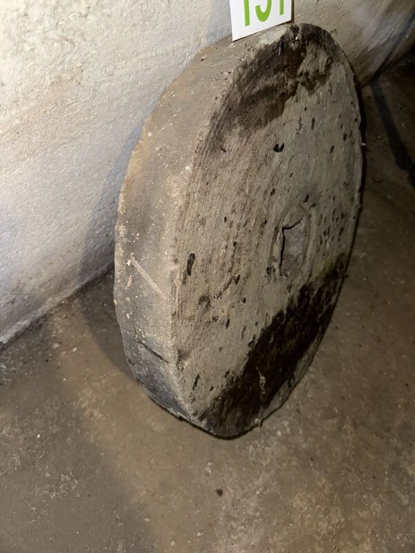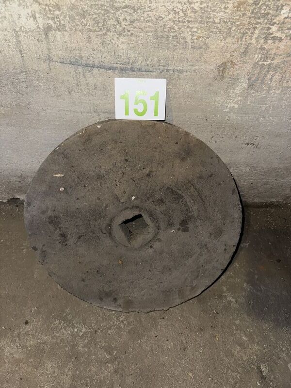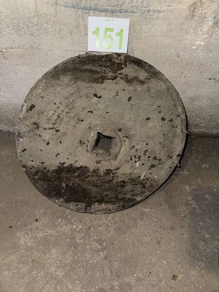 Antique grinding wheel only see photos sold as is approximately 24 inches in circumference