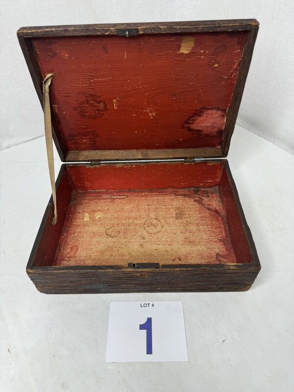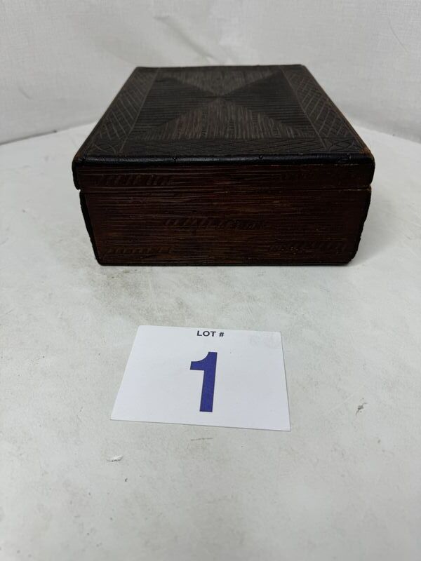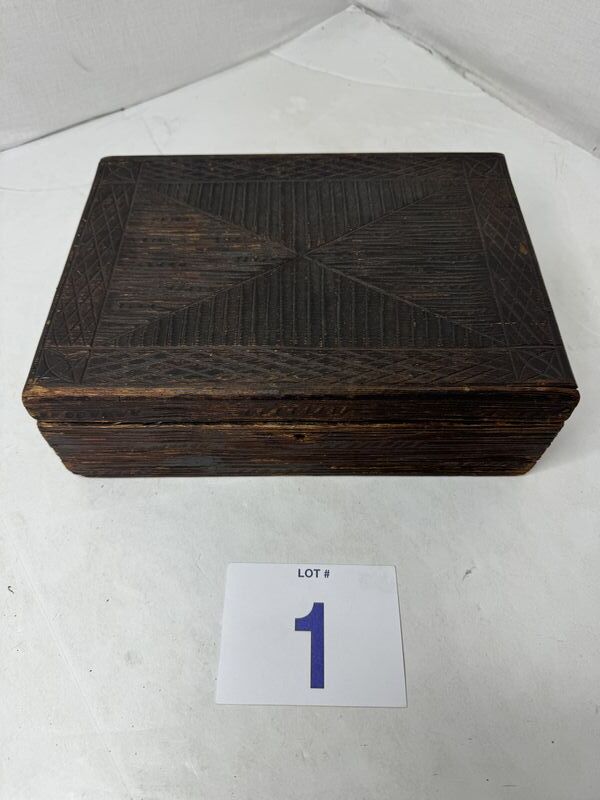 Hand carved folk art box 12” x 8” x 4” high. See photos for condition sold as is.