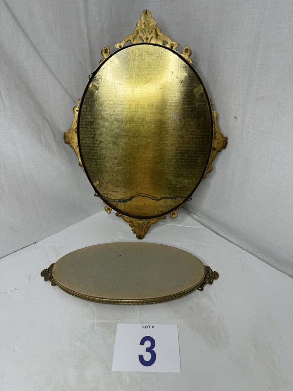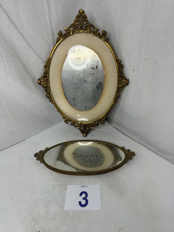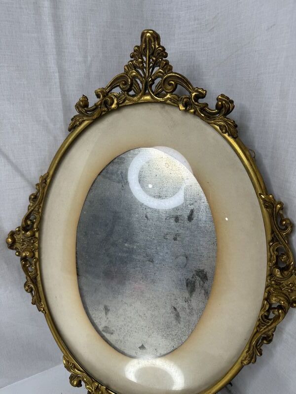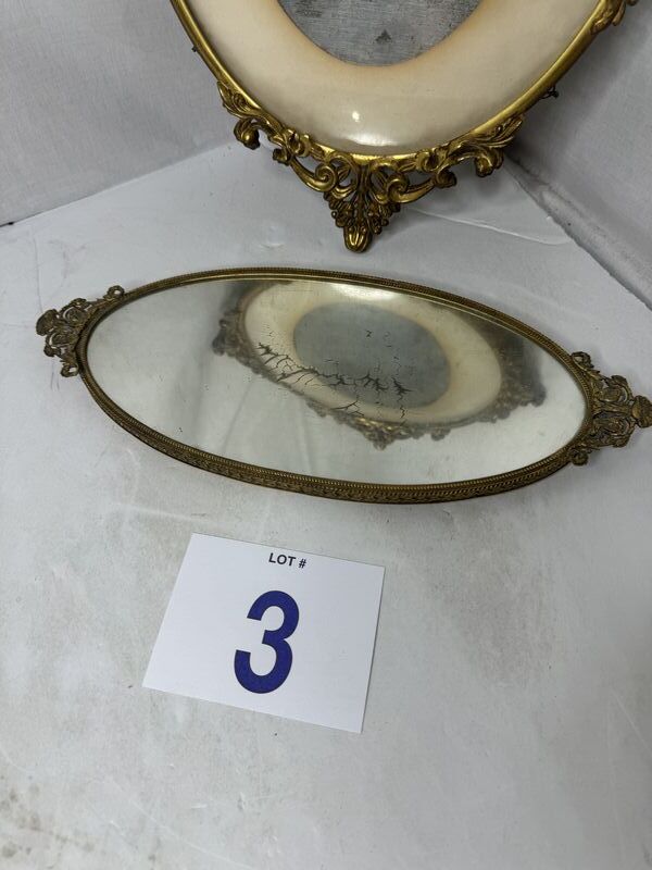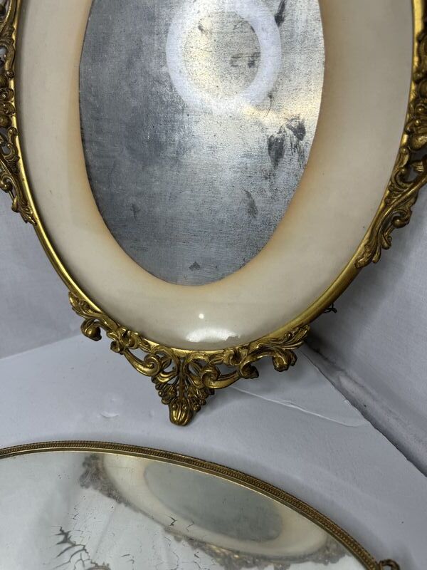 Antique mirror frame lot one mirror has a broken handle see see photos other mirror is just a frame sold as is