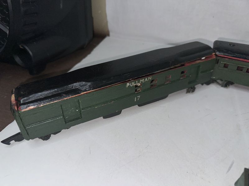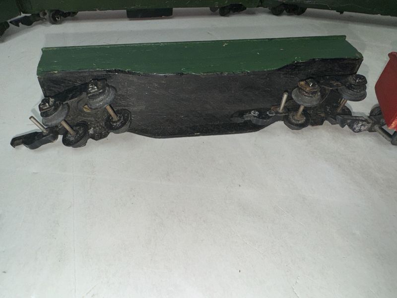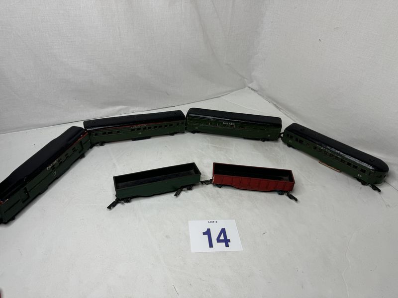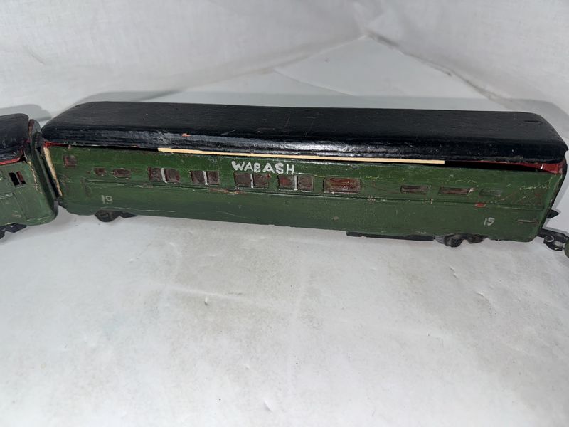 Six individual train cars all handmade hand painted. See photos for description sold as is.