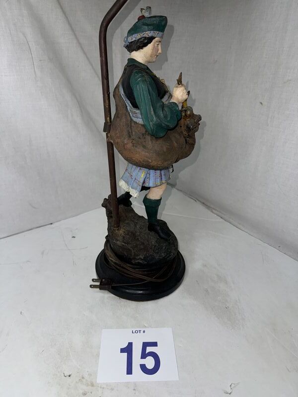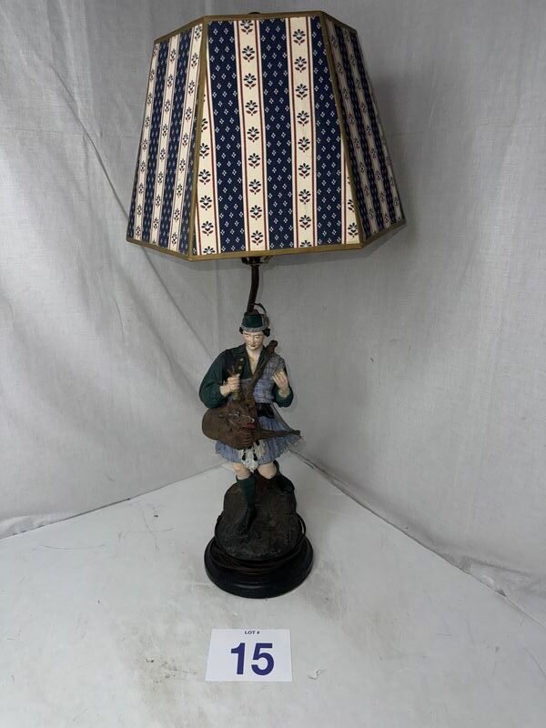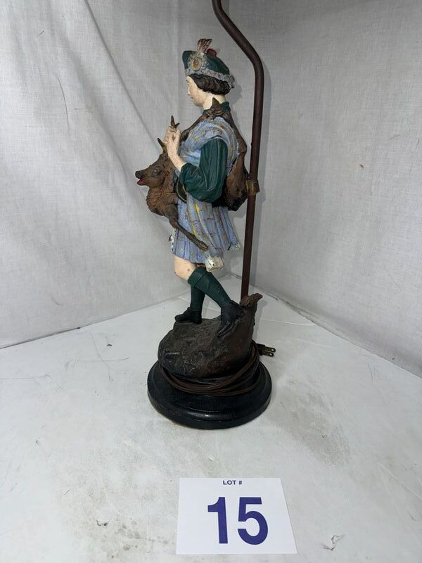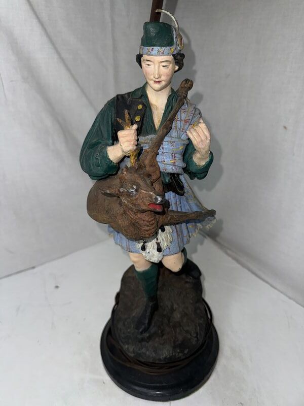 Scottish Hunter holding deer lamp in working condition the deer is missing one antler sold as is