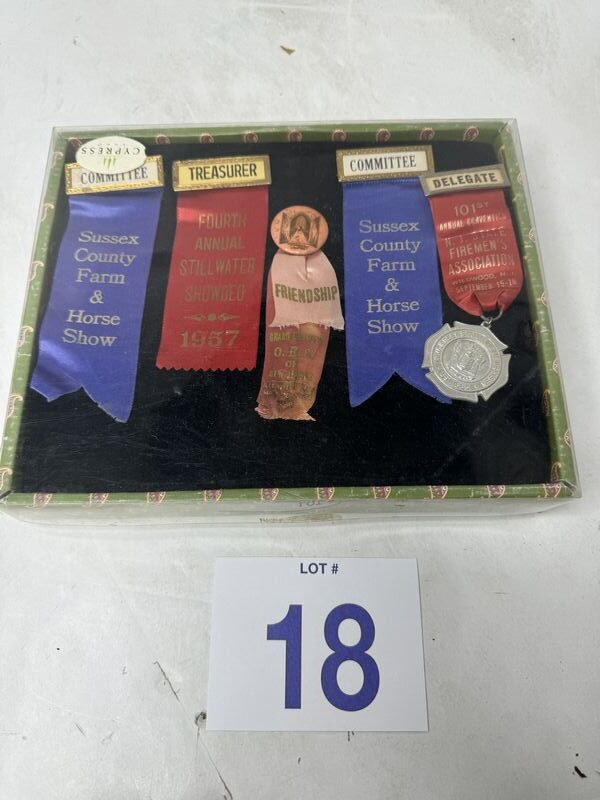 Sussex County, New Jersey award, ribbons and fireman association ribbon 1950s horse shows see photos for description sold as is